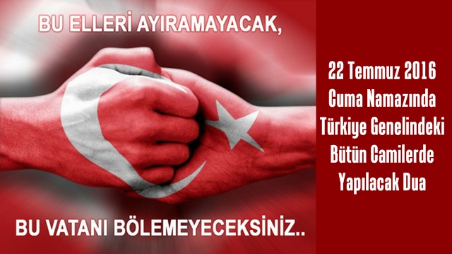 Allah’ım! Bizleri ayrılıklardan, fitne ve fesattan uzaklaştır. Maddi ve manevi güçlerimizi birleştir. Aramızdaki dayanışmayı güçlendir. İstiklal ve istikbalimize pranga vurmaya çalışan dahili ve harici düşmanlara karşı bizi mansur ve muzaffer eyle Allah’ım!